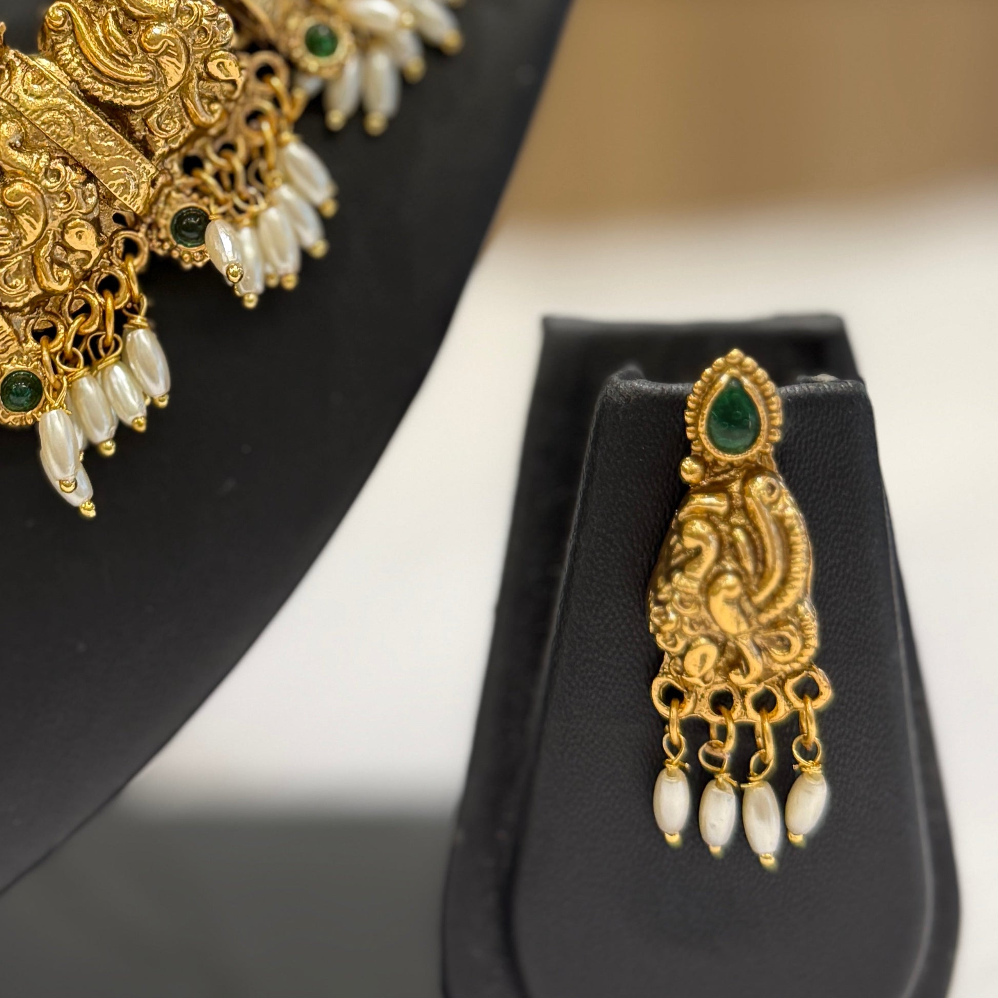 Antique Goddess Lakshmi Pearl Necklace - Green